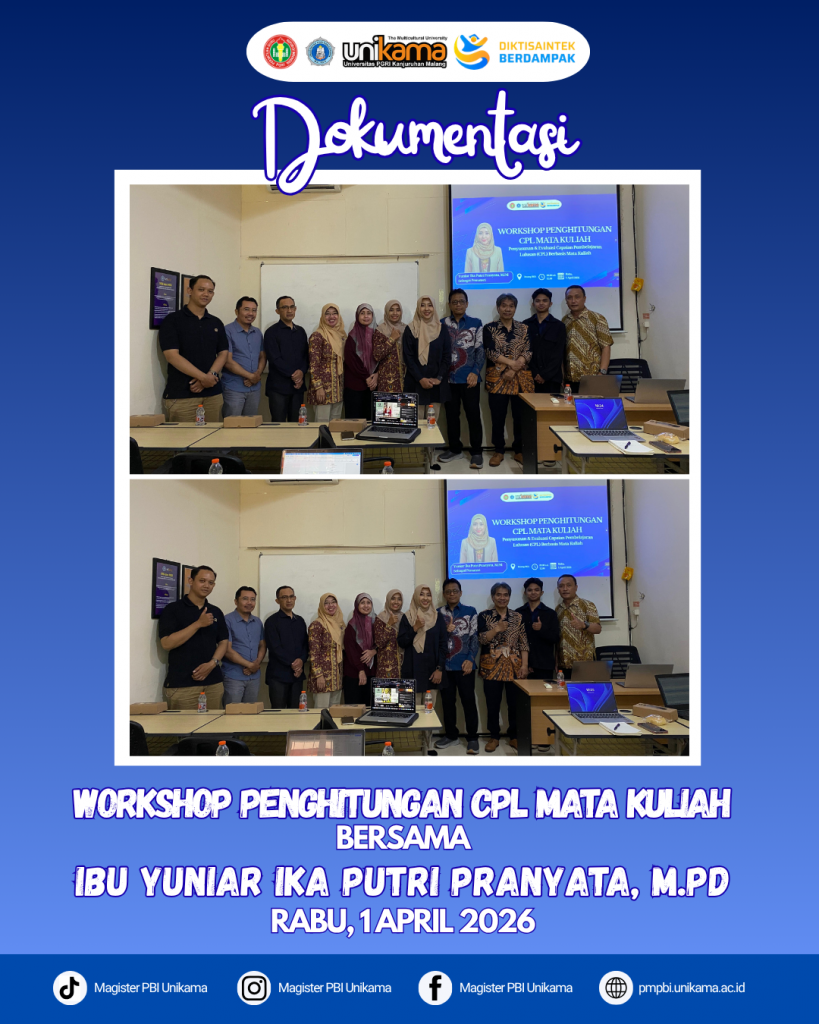 MALANG – Dalam rangka menjaga standar mutu akademik dan memastikan kualitas lulusan yang kompeten, Program Studi Magister (S2) Pendidikan Bahasa Inggris (PBI) Universitas PGRI Kanjuruhan Malang (Unikama) terus melakukan berbagai langkah strategis. Salah satu wujud nyata dari komitmen tersebut adalah suksesnya penyelenggaraan “Workshop Penghitungan Capaian Pembelajaran Lulusan (CPL) Mata Kuliah: Penyusunan & Evaluasi CPL Berbasis Mata Kuliah” yang berlangsung pada Rabu, 1 April 2026.
